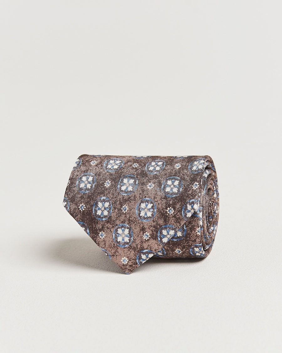 Men | Amanda Christensen Box Set Printed Silk 8cm Tie With Pocket Square Brown | Amanda Christensen | Box Set Printed Silk 8cm Tie With Pocket Square Brown