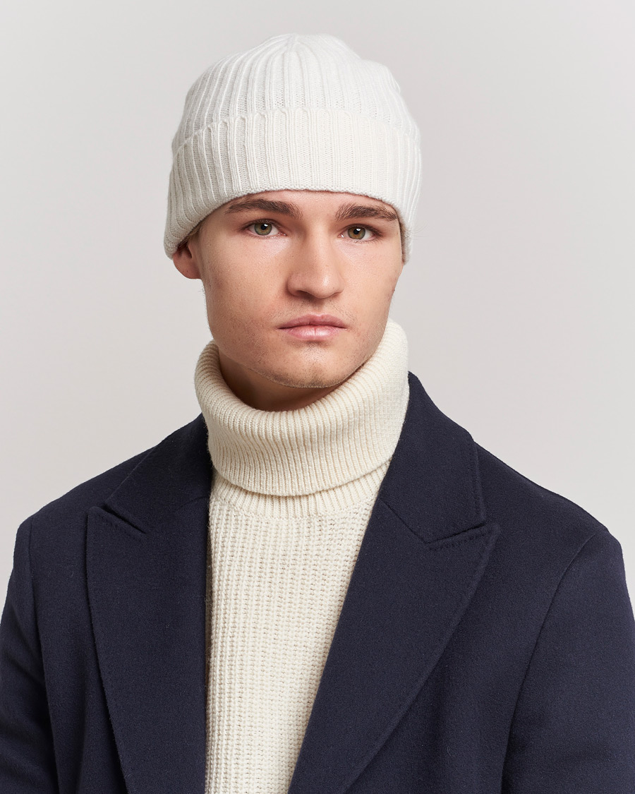 Rib Knitted Cashmere Cap Cream
