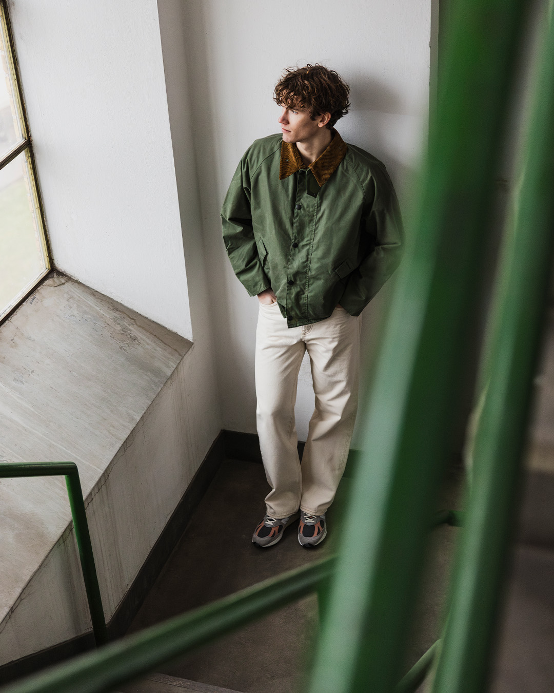 The green waxed jacket is not just a spring classic; it's truly a year-round classic. Wear it with denim, a lightweight knitted sweater, and handmade derbies for a relaxed countryside look that also works well in the city. The waxed cotton easily withstands light rain and wind. Perfect for unpredictable spring weather.