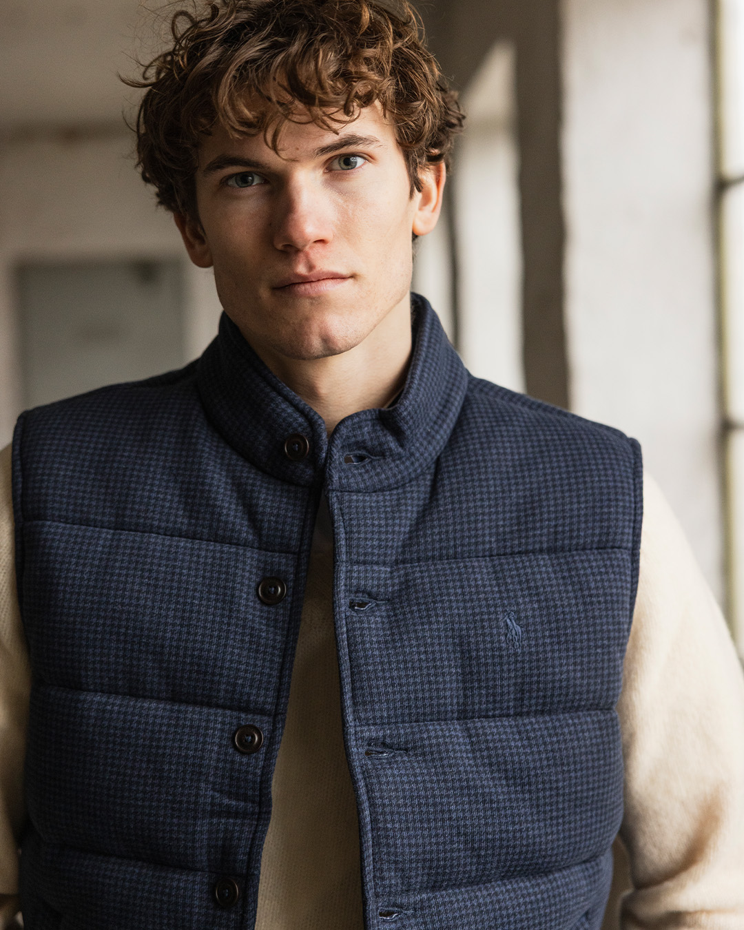 This houndstooth-patterned down vest from Polo Ralph Lauren adds both warmth and texture. Wear it over a fine-knit sweater, paired with chinos or dark jeans and a pair of brown loafers. Perfect for early spring when the mornings are still crisp.