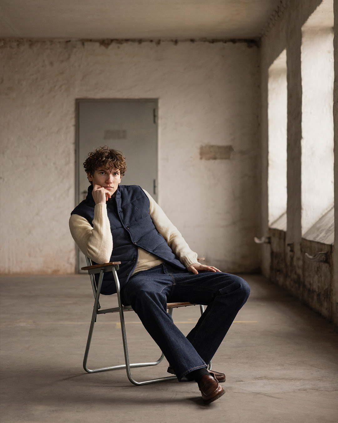 This brown variant feels soft and lightly insulating without being heavy. Combine it with a white cable-knit sweater, straight jeans, and leather loafers or minimalist sneakers for a relaxed yet thoughtfully curated seasonal look.