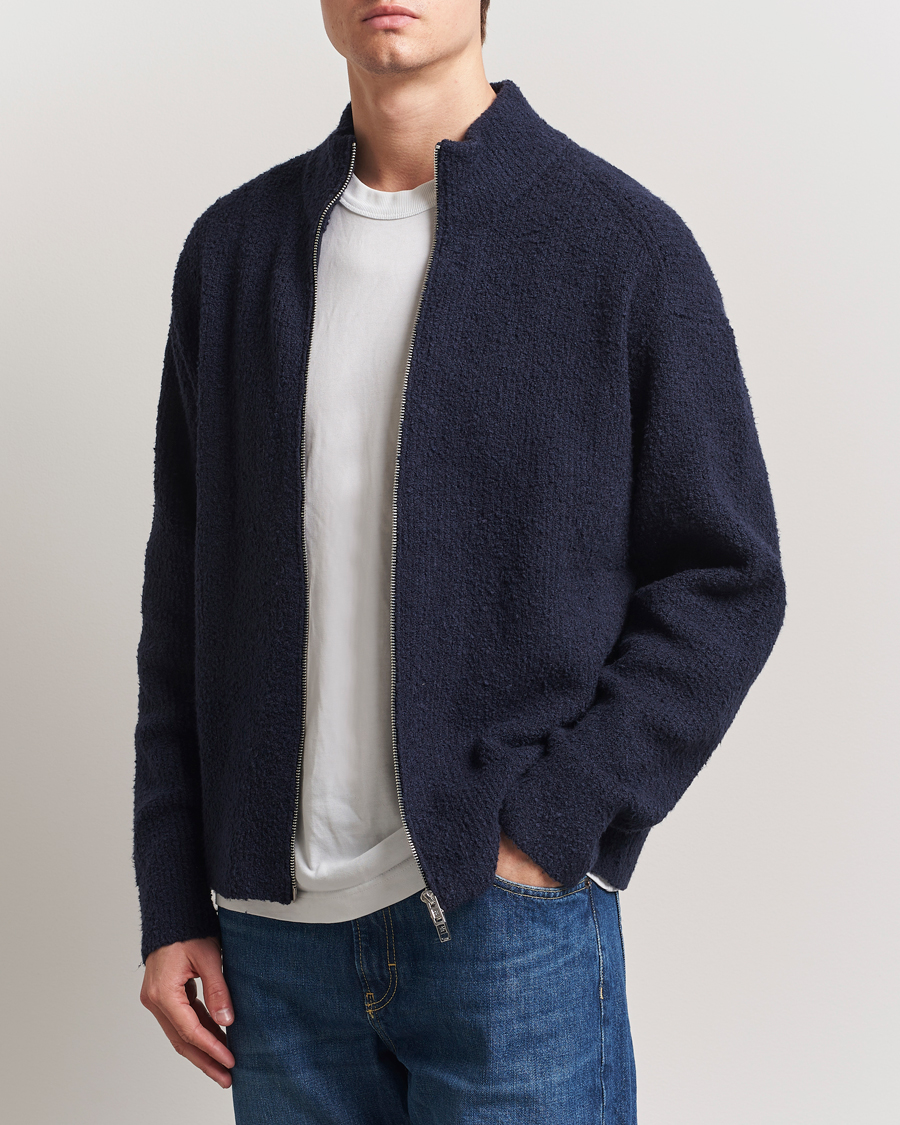Bouclé Knitted Full Zip Navy