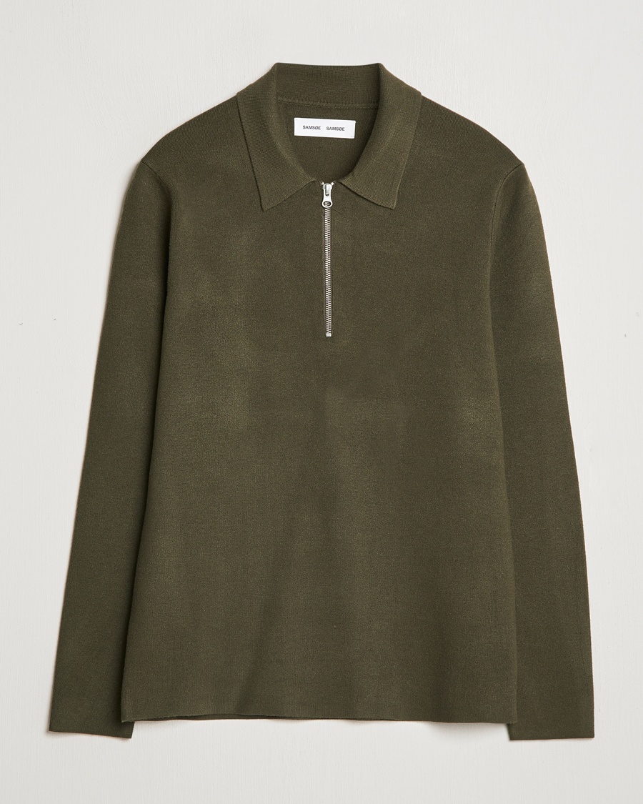 Cotton Striped Cable Half Zip Kalamata Green