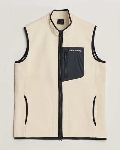 Fleece vest from Peak Performance. Peak Performance, a prominent Swedish brand since 1986, distinguishes itself by seamlessly combining functionality with stylish design. The brand specialises in creating high-quality and innovative clothing that is equally suitable for the ski slopes and the urban environment.
