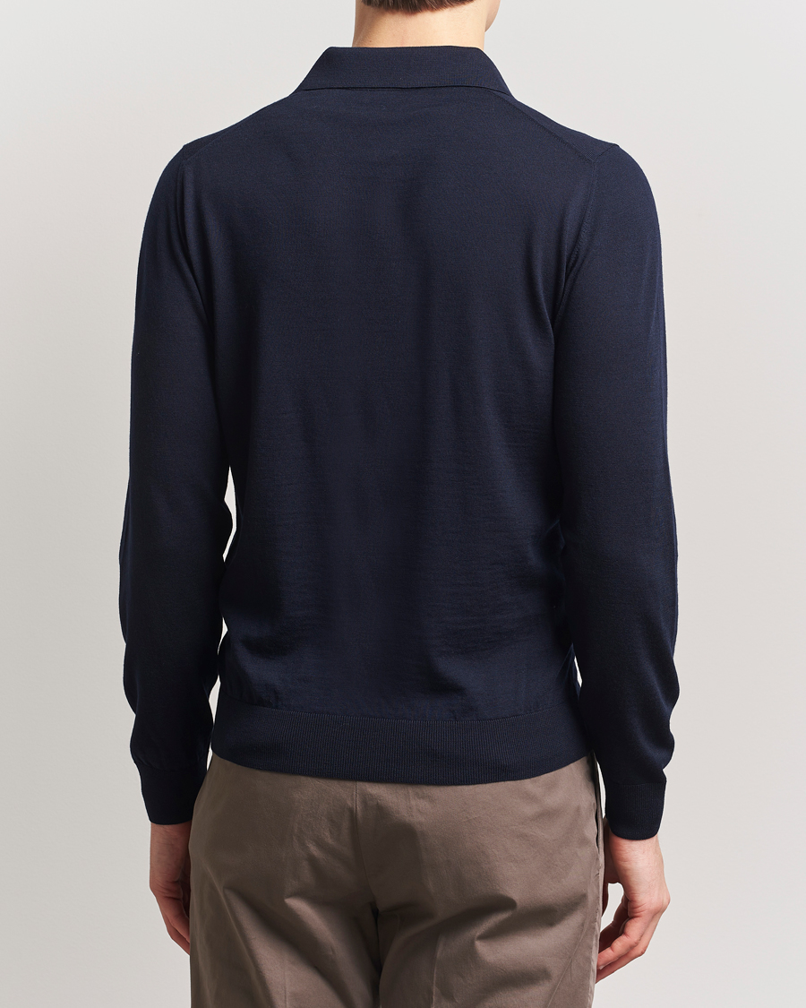Merino Wool Long Sleeve Polo Navy